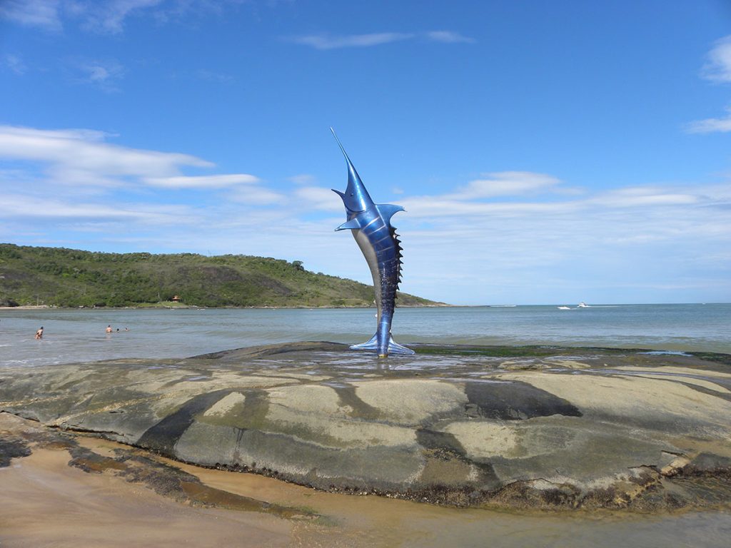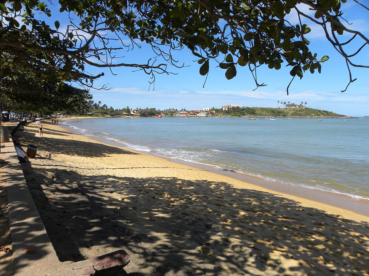 A primeira parada que fizemos foi na Praia do Meaípe. É uma das mais elogiadas, uma aldeia de pescadores ao redor de uma praia calma, contornada por castanheiras e, apesar de ser procurada por quem deseja um recanto mais sossegado, Meaípe tem se tornado cada vez mais “point” capixaba, especialmente nas altas temporadas.